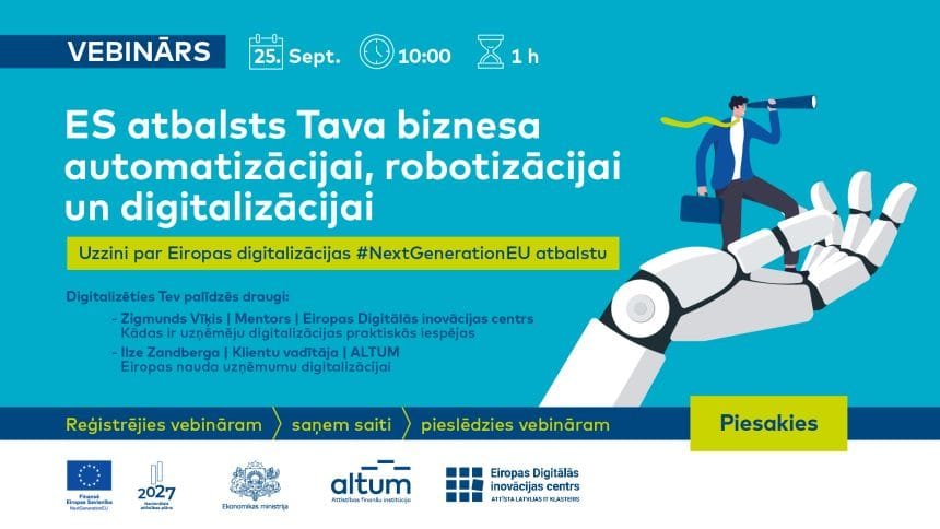 Vebinārs: ES atbalsts Tava biznesa automatizācijai, robotizācijai un digitalizācijai