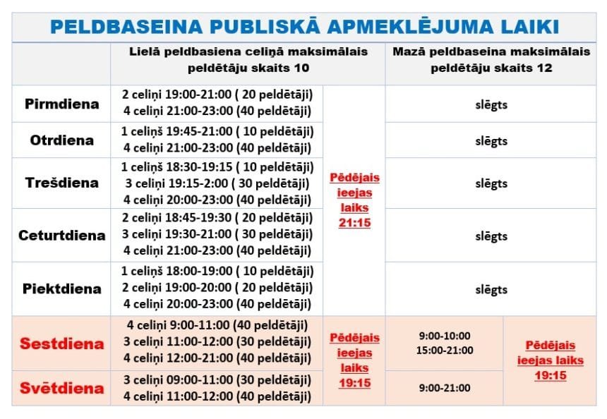 Peldbaseinu publiskā apmeklējuma laiki