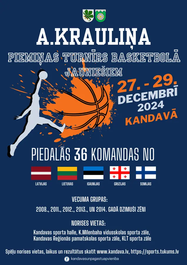 No 27. līdz 29. decembrim Kandavā norisināsies A.Krauliņa piemiņas turnīrs basketbolā jauniešiem 2024.