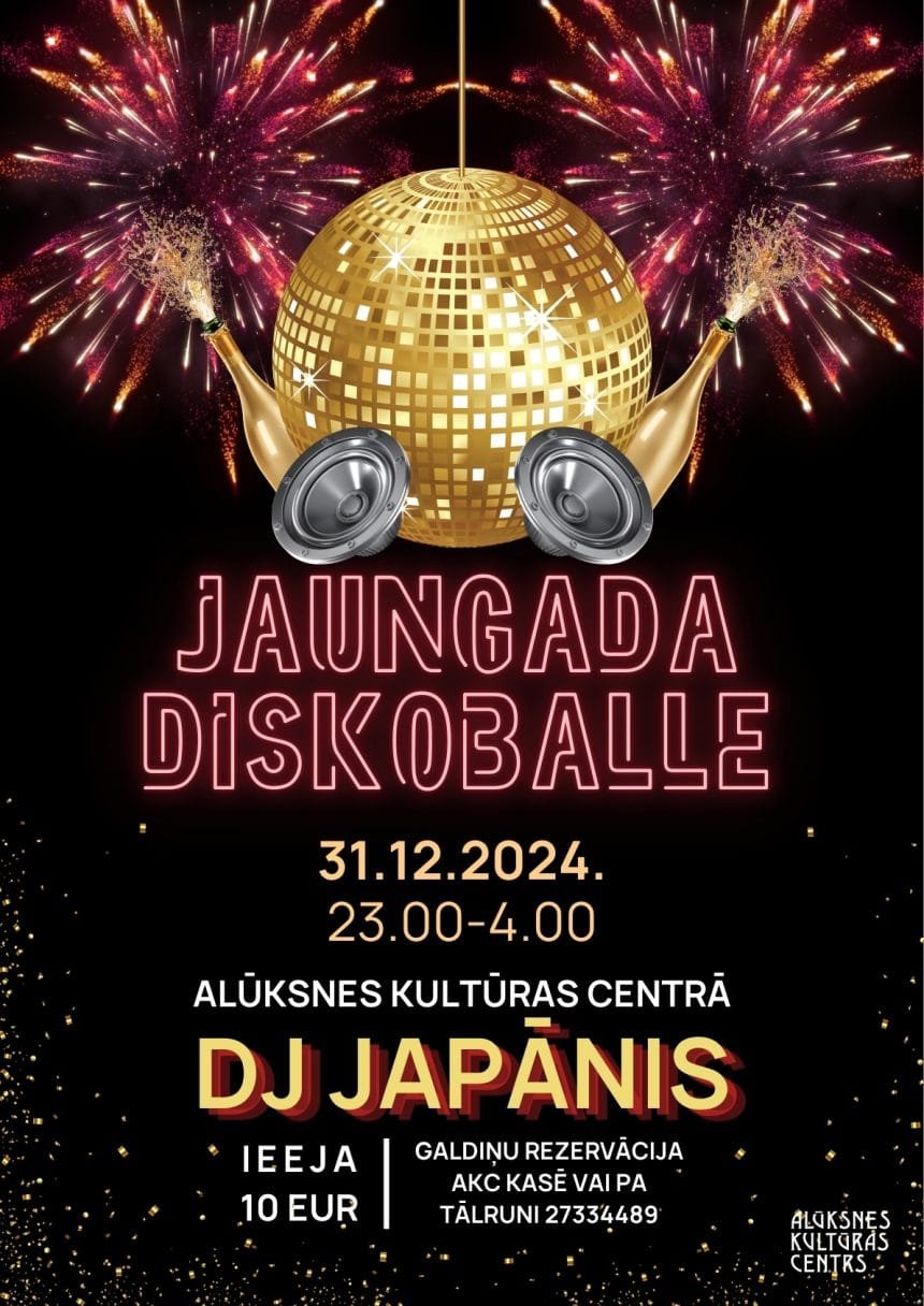 31. decembrī no plkst. 23.00 līdz 4.00 Alūksnes Kultūras centrā notiks Jaungada nakts diskoballe. Vakara īpašais viesis – leģendārais DJ Japānis, kurš ar savu profesionālismu un enerģiju parūpēsies par to, lai ballīte būtu neaizmirstama.