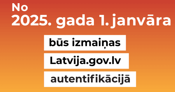 No 2025. gada 1. janvāra mainīsies pieslēgšanās kārtība Valsts pārvaldes pakalpojumu portālam Latvija.gov.lv. Sākot ar jauno gadu, autentifikācija portālā būs iespējama, izmantojot mobilo lietotni eParaksts mobile, personas apliecību (eID karti), eParaksts karti vai mobilās lietotnes Smart-ID kvalificēto versiju, kā arī citu Eiropas Savienības dalībvalstu oficiālos identifikācijas līdzekļus.
