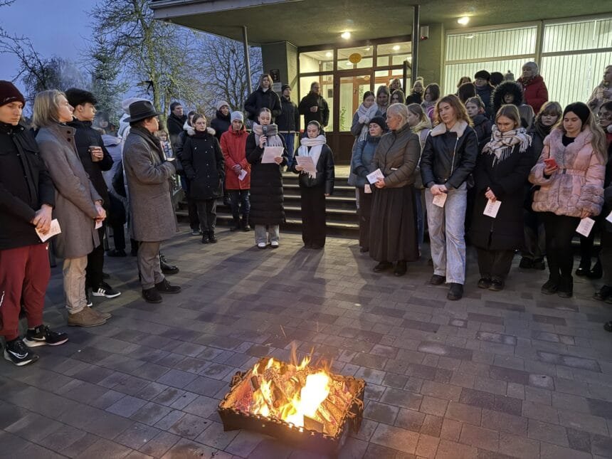 Arī pie Jelgavas Tehnoloģiju vidusskolas šodien tika iedegts atmiņu ugunskurs, un 23. un 24. janvārī skolēniem būs iespēja iepazīt barikāžu muzeja mobilo ekspozīciju “MUZEOBUSS”, kas norisināsies programmas “Skolas soma” ietvaros.