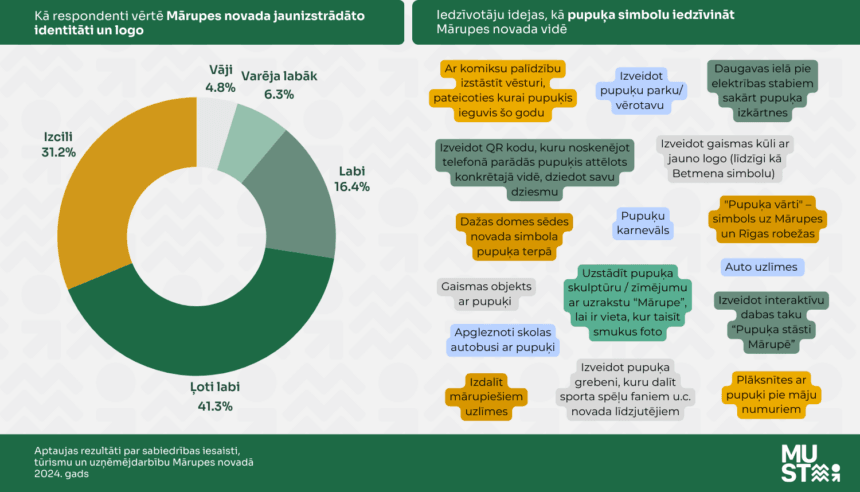 Aptaujas dalībniekiem tika arī lūgts piedāvāt idejas pupuķa simbola iedzīvināšanai vidē, un tika saņemta virkne priekšlikumu (skatīt infografiku).