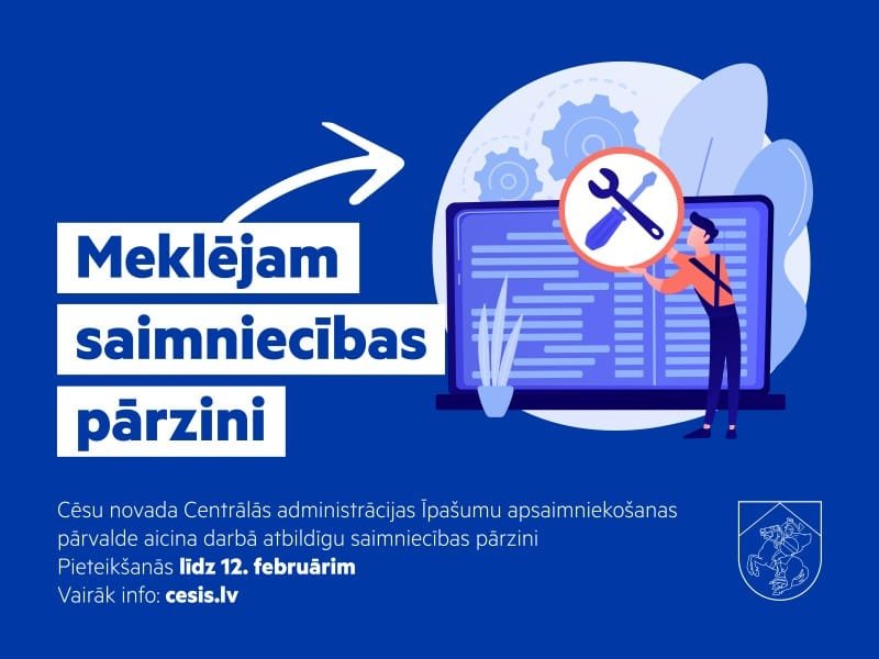 CV, pieteikuma vēstuli sūti uz e-pasta adresi vakances@cesunovads.lv ar norādi “Saimniecības pārzinis” līdz 2025. gada 12. februārim (ieskaitot).