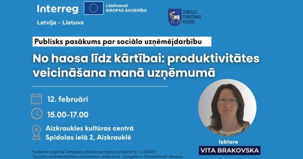 Tā ietvaros notiks vieslekcija “No haosa līdz kārtībai: produktivitātes veicināšana manā uzņēmumā”, kuru vadīs lektore Vita Brakovska.