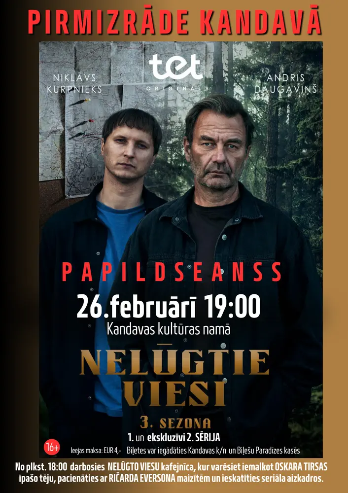 PIRMIZRĀDE KANDAVĀ Latviešu seriāla “NELŪGTIE VIESI-3” 1.un 2.sērija PAPILDSEANSS 26.02.2025 18:00