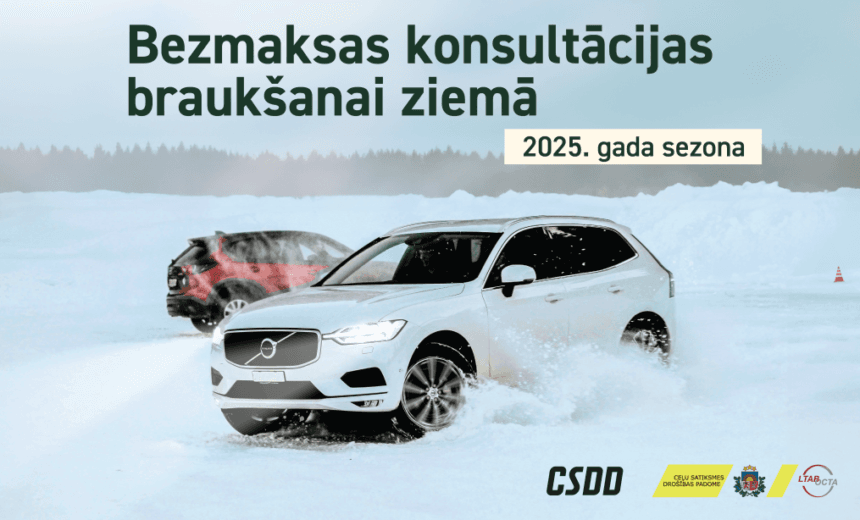 Lai uzlabotu un pilnveidotu autovadītāju prasmes un zināšanas, vadot auto ziemas apstākļos, CSDD sadarbībā ar Latvijas Transportlīdzekļu apdrošinātāju biroju (LTAB) aicina autovadītājus pieteikties bezmaksas ziemas braukšanas konsultācijām.