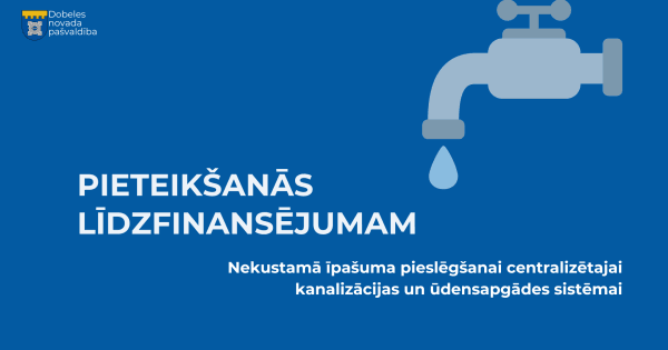 Plašāka informācija – Dobeles novada pašvaldības 24.11.2022. saistošie noteikumi Nr.44 “Dobeles novada pašvaldības līdzfinansējuma piešķiršanas kārtība dzīvojamo māju un dzīvojamo māju jaunbūvju pieslēgšanai centralizētajai ūdensapgādes un kanalizācijas sistēmai” un infografika