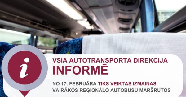 Atsaucoties uz pasažieru ierosinājumiem un Sabiedriskā transporta padomes lēmumu, no šī gada 17. februāra reģionālo autobusu maršrutos Gulbenes, Alūksnes un Balvu maršrutu tīklu daļā tiks veiktas vairākas izmaiņas maršrutu sarakstā un pieturvietās.