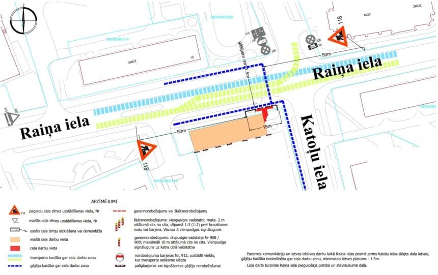 Transformatora stacijas izbūves laikā tiks sašaurināta ietve Raiņa ielā