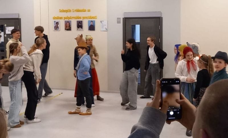 Salaspils 1.vidusskolas dramatiskais pulciņš 18. februārī devās pie skolas 7. un 9. klases skolēniem svinēt Meteņa dienu. Bērni rādīja pasaku par zvejnieku un viltīgo lapsu, skaitīja tautasdziesmas un uzdeva mīklas vecāko klašu skolēniem.