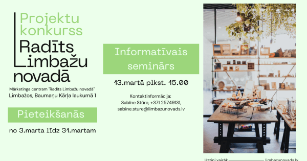 13.martā plkst. 15.00, attālināti, Webex platformā notiks informatīvais seminārs par konkursa nosacījumiem un būs iespēja uzdot sev interesējošos jautājumus.