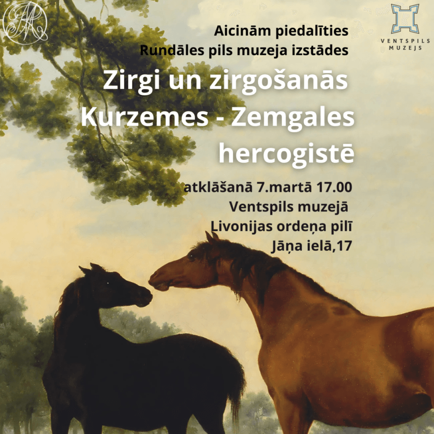 Ventspils muzejā Livonijas ordeņa pilī 7. martā plkst. 17.00 tiks atklāta Rundāles pils muzeja ceļojošā izstāde “Zirgi un zirgošanās Kurzemes-Zemgales hercogistē”.