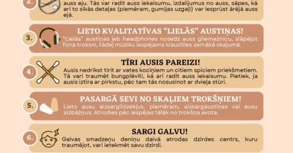 Pasaules dzirdes dienas ietvaros SPKC speciālisti izstrādājuši infografiku “Rūpējies par savu dzirdi”, kurā apkopoti ieteikumi, kā saudzēt dzirdi.
