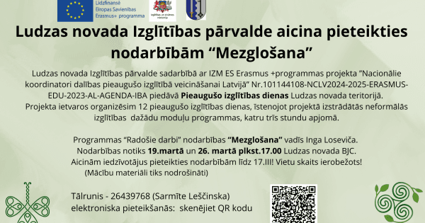 Ludzas novada Izglītības pārvalde aicina pieteikties nodarbībām “Mezglošana”