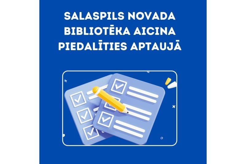 Lai plānotu un pilnveidotu bibliotēkas darbu, Salaspils novada bibliotēka aicina ikvienu Salaspils novada iedzīvotāju piedalīties aptaujā par bibliotēkām.