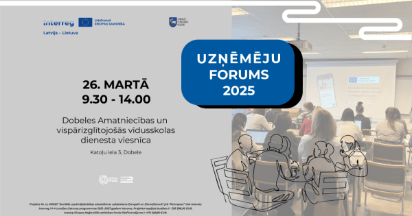Dobeles Pieaugušo izglītības un uzņēmējdarbības atbalsta centra komanda aicina uz “Uzņēmēju forumu”, kas norisināsies Dobelē, Dobeles Amatniecības un vispārizglītojošās vidusskolas telpās, 26. martā no plkst. 10.00 līdz 14.00.