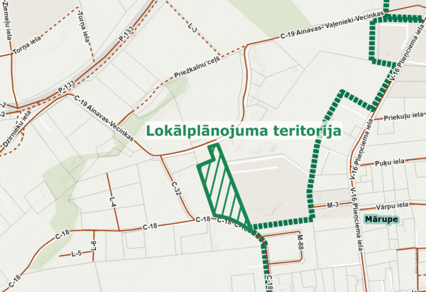 LP izstrādes mērķis: Saskaņā ar juridiskās personas ierosinājumu, izstrādes mērķis ir grozīt Mārupes novada teritorijas plānojumu, mainot funkcionālo zonējumu no “Mazsaimniecību apbūve ārpus ciemiem (DzSM)” uz zonējumu, kas pieļautu vieglās ražošanas un noliktavu apbūvi, lai nodrošinātu iespēju attīstīties un paplašināties šobrīd blakus zemes vienībā esošam uzņēmumam SIA “Plieņciema centrs”, paredzot izbūvēt kravu termināli, noliktavas zonu, piegādes rampas un biroju telpas, ko nav iespējams īstenot saskaņā ar spēkā esošo Teritorijas plānojumu.