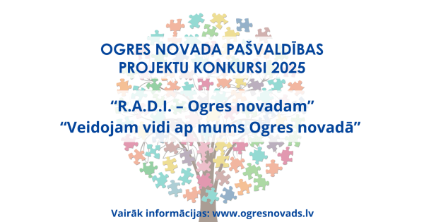 Ogres novada pašvaldība aicina iesniegt pieteikumus ikgadējos projektu konkursos “Radoši – Aktīvi – Darbīgi – Izglītojoši – Ogres novadam” (“R.A.D.I. – Ogres novadam”) un “Veidojam vidi ap mums Ogres novadā” un izmantot iespēju saņemt pašvaldības atbalstu savu ideju realizācijai.