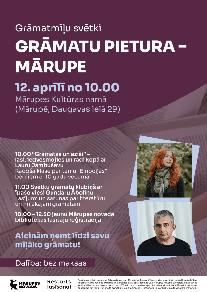 Sestdien, 12. aprīlī, Mārupes pilsētā pirmo reizi norisināsies grāmatmīļiem veltīti svētki “Grāmatu pietura – Mārupe”.