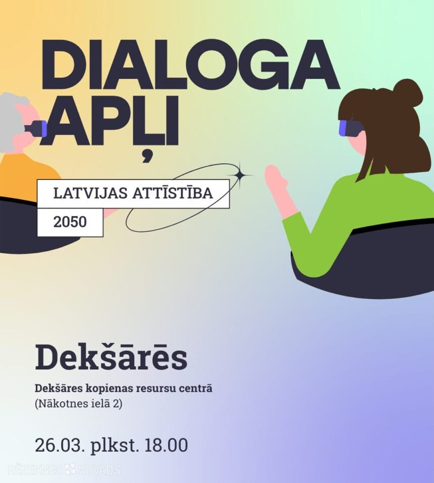 26. martā Dekšāres kopienas resursu centrā norisināsies “Dialoga apļi”, ko rīko Valsts kanceleja sadarbībā ar biedrību “Latvijas Lauku forums”, nodibinājumu Fonds atvērtai sabiedrībai DOTS. Šajās sarunās aicinām iedzīvotājus diskutēt par Latvijas nākotnes attīstības iespējām līdz 2050. gadam, izmantojot Somijā izstrādāto “Dialoga apļu” metodi.