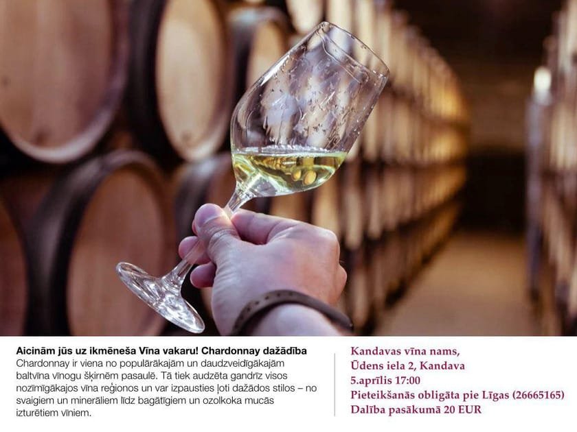 Pieteikšanās obligāta pie Līgas +371 26665165 vai Kandavas Vīna namā +371 22320214