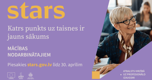 Valsts izglītības attīstības aģentūra (VIAA) piedāvā mācību iespējas nodarbinātajiem un pašnodarbinātajiem no 18 gadu vecuma platformā stars.gov.lv. No 18. marta interesenti var pieteikties 64 izglītības programmām, kas tiek piedāvātas 14 izglītības iestādēs visā Latvijā. Pieteikties mācībām var līdz 30. aprīlim prasmju pārvaldības platformā www.stars.gov.lv , izveidojot individuālo mācību kontu.