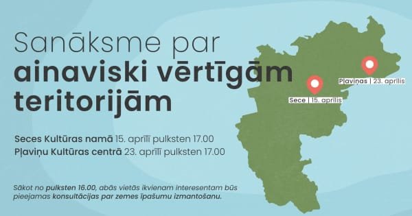 Ņemot vērā iedzīvotāju izteikto aicinājumu iepazīstināt ar ainavu teritorijām, to robežām un nosacījumiem turpmākajai attīstībai, aprīlī tiks organizētas divas klātienes sanāksmes: