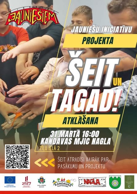 Aicinām jauniešus uz biedrības “Kandavas novada jauniešiem” projekta “Šeit un tagad!” atklāšanas pasākumu 31.martā plkst.16 Kandavas MJIC NAGLA zālē.