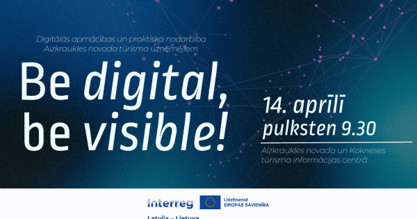 14. aprīlī pulksten 9.30 Aizkraukles novada un Kokneses Tūrisma informācijas centrā Koknesē, 1905. gada ielā 7, Aizkraukles novada tūrisma uzņēmējiem norisināsies digitālās apmācības un praktiska nodarbība “Be digital, be visible!”.