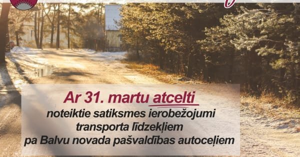 - Atcelt noteiktos satiksmes masas ierobežojumus no 2025.gada 31.marta pa Balvu novada pašvaldības autoceļiem.