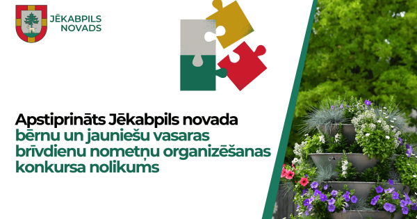 27. marta domes sēdē tika apstiprināts Jēkabpils novada bērnu un jauniešu vasaras brīvdienu nometņu organizēšanas konkursa nolikums. Konkursa mērķis ir nodrošināt pilnvērtīgu bērnu un jauniešu brīvā laika pavadīšanu skolēnu vasaras brīvdienās Jēkabpils novadā.