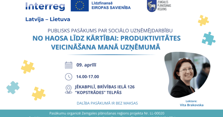 Praktiskus risinājumus produktivitātes uzlabošanai seminārā piedāvās lektore Vita Brakovska lekcijā “No haosa līdz kārtībai: produktivitātes veicināšana manā uzņēmumā”. Balstoties uz konkrētiem piemēriem, klātesošajiem būs iespēja aktīvi izvērtēt sava uzņēmuma procesus un meklēt inovatīvus uzlabojumus. Lekcijā tiks padziļināti skaidrots, kā identificēt un novērst darba plūsmas sastrēgumus, efektīvi plānot prioritātes, kā arī gudrāk pārvaldīt resursus un izmantot pieejamos digitālos risinājumus. Tāpat lektore dalīsies ar piemēriem par sociālajām inovācijām.