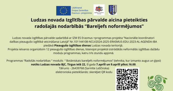 Ludzas novada Izglītības pārvalde sadarbībā ar IZM ES Erasmus +programmas projekta ”Nacionālie koordinatori dalības pieaugušo izglītībā veicināšanai Latvijā” Nr.101144108-NCLV2024-2025-ERASMUS-EDU-2023-AL-AGENDA-IBA piedāvā Pieaugušo izglītības dienas Ludzas novada teritorijā.