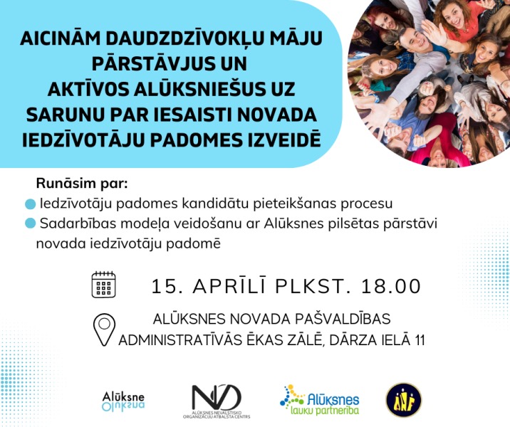 Tā kā Alūksnē ir vairāki daudzdzīvokļu dzīvojamo māju mikrorajoni, uz šo tikšanos īpaši aicinām ierasties daudzdzīvokļu māju pārstāvjus, lai modelētu iespējamos sadarbības veidus starp sabiedrību un Alūksnes pilsētas pārstāvi novada iedzīvotāju padomē.