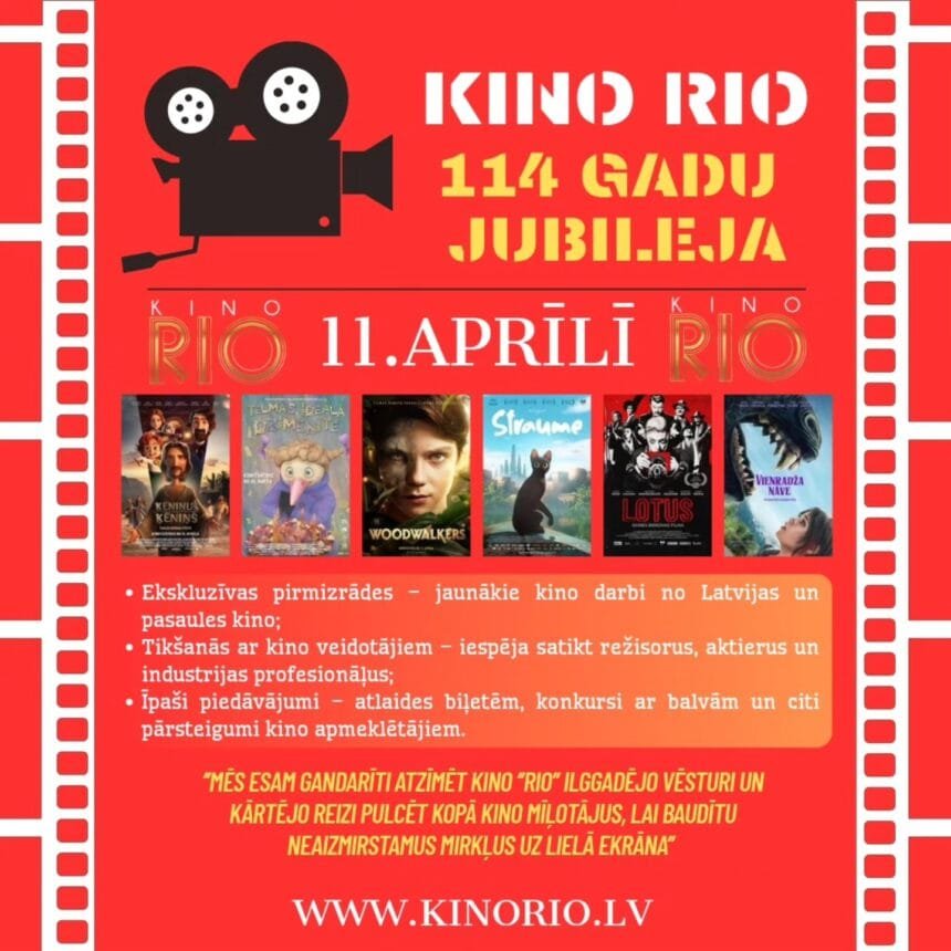 Viens no senākajiem pasaulē un vecākais nepārtraukti darbojošais kinoteātris Latvijā – kino ‘’RIO’’ – šogad atzīmē savu 114. gadu jubileju. Par godu šim nozīmīgajam notikumam, 11. aprīlī kino ‘’RIO’’ apmeklētājiem piedāvās aizraujošu programmu ar seansiem, izlozēm un balvām, ar ekskluzīvām pirmizrādēm, ar aktieru un radošās komandas piedalīšanos.