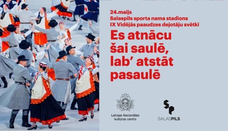 24. maijā plkst. 19.00 Salaspils sporta nama stadionā pulcēsies ap 6500 dejotāju, lai kopā izdejotu skaistākās spēka dejas IX Vidējās paaudzes dejotāju svētkos “Es atnācu šai saulē, lab’ atstāt pasaulē”. Skatītājiem būs iespēja piedzīvot koncertu gan klātienē stadiona tribīnēs, gan arī būt kopā ar dejotājiem attālināti kanālā ReTV.