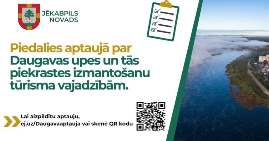 Jēkabpils novada iedzīvotāji, svarīga jūsu iesaiste dalībai aptaujā par Daugavas upes un tās piekrastes izmantošanu tūrisma vajadzībām!