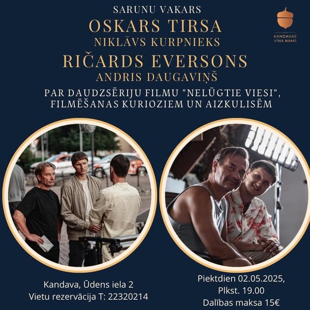 2. maijā 2025. gadā plkst. 19.00 |  Kandavas Vīna nams | Vietu rezervācija: 22320214 | Dalībsa maksa: 15 EUR