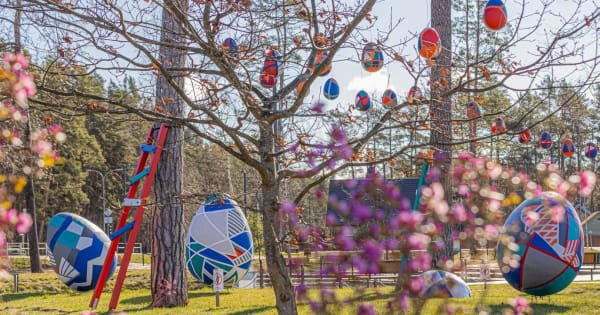 Tuvojoties Lieldienām, Jūrmalas pilsētvidi rotā svētku dekori – parkos, skvēros un koku zaros izvietotas apgleznotas krāsainas lielformāta olas un zaķi.