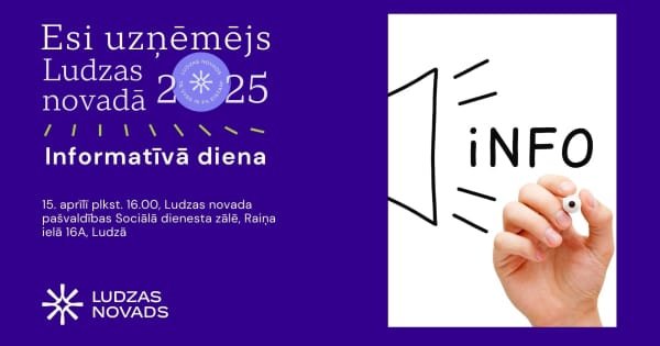 15. aprīlī plkst. 16.00 tiks rīkota informatīvā diena par konkursu “Esi uzņēmējs Ludzas novadā 2025”. Pasākums notiks Raiņa ielā 16A, Ludzā.