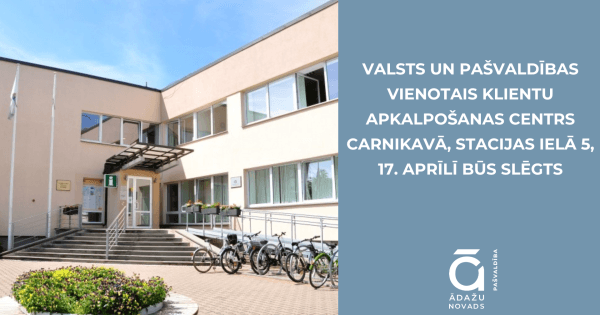 Valsts un pašvaldības vienotais klientu apkalpošanas centrs Carnikavā, Stacijas ielā 5, tehnisku iemeslu dēļ, šā gada 17. aprīlī būs slēgts.
