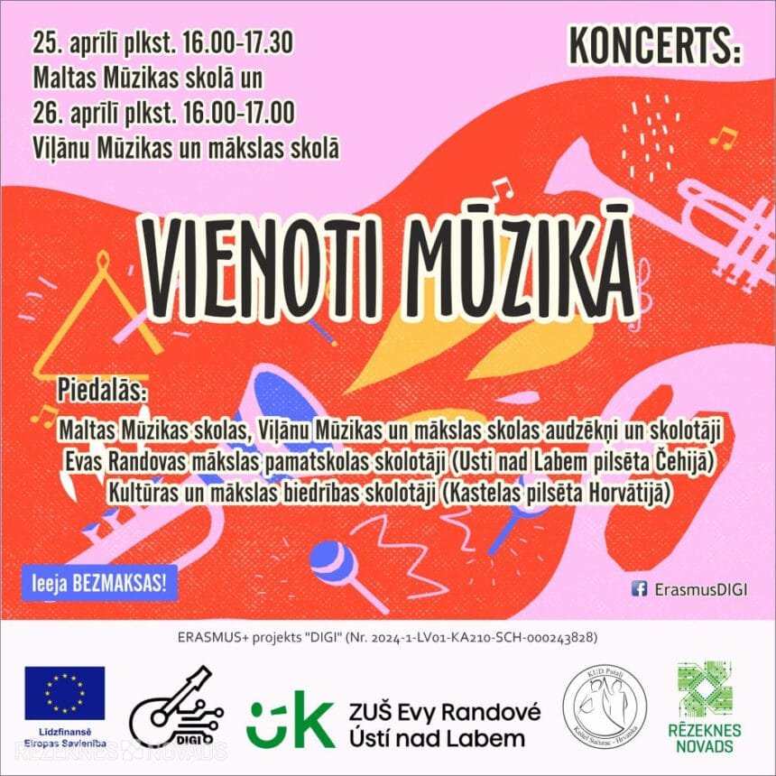 Mūsdienās tehnoloģiju un radošuma loma kļūst arvien nozīmīgāka arī mūzikas izglītībā. Šajā kontekstā Rēzeknes novada pašvaldība ir uzsākusi īstenot Erasmus+ starptautisko projektu “DIGI”. Projekts apvieno skolotājus no Čehijas, Horvātijas un Latvijas, kuri darbojas neformālās mūzikas izglītības jomā, veicinot radošu pieeju un tehnoloģiju izmantošanu mūzikā kā jaunu izteiksmes iespēju avotu un starpkultūru sadarbības veicinātāju.