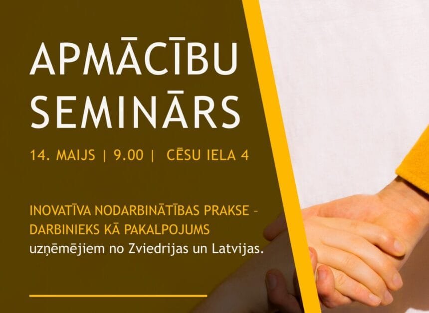 Lai atbildētu uz aktuālajām darba tirgus vajadzībām un veicinātu iekļaujošas darba vides attīstību, šī gada 14. maijā tiks rīkotas starptautiskas apmācības “Inovatīva nodarbinātības prakse – darbinieks kā pakalpojums”. Tajās piedalīsies uzņēmēji no Latvijas un Zviedrijas. Apmācību laikā dalībnieki iegūs praktiskas zināšanas par cilvēku ar intelektuālās attīstības traucējumiem nodarbināšanu, uzzinās, kā pielāgot darba vidi dažādu vajadzību darbiniekiem, un iepazīs jaunu nodarbinātības modeli – “Darbinieks kā pakalpojums”. Šis modelis piedāvā inovatīvu pieeju darba organizācijai un var kļūt par ilgtspējīgu risinājumu darbaspēka trūkuma problēmai.