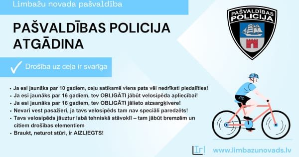 Limbažu novada pašvaldības policija atgādina, kādi ir velosipēdistu pienākumi, piedaloties ceļu satiksmē.