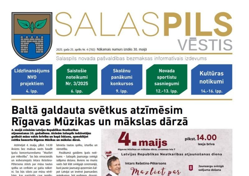 25. aprīlī iznācis Salaspils novada pašvaldības bezmaksas informatīvā laikraksta “Salaspils Vēstis” jaunākais numurs. Laikrakstā lasiet: