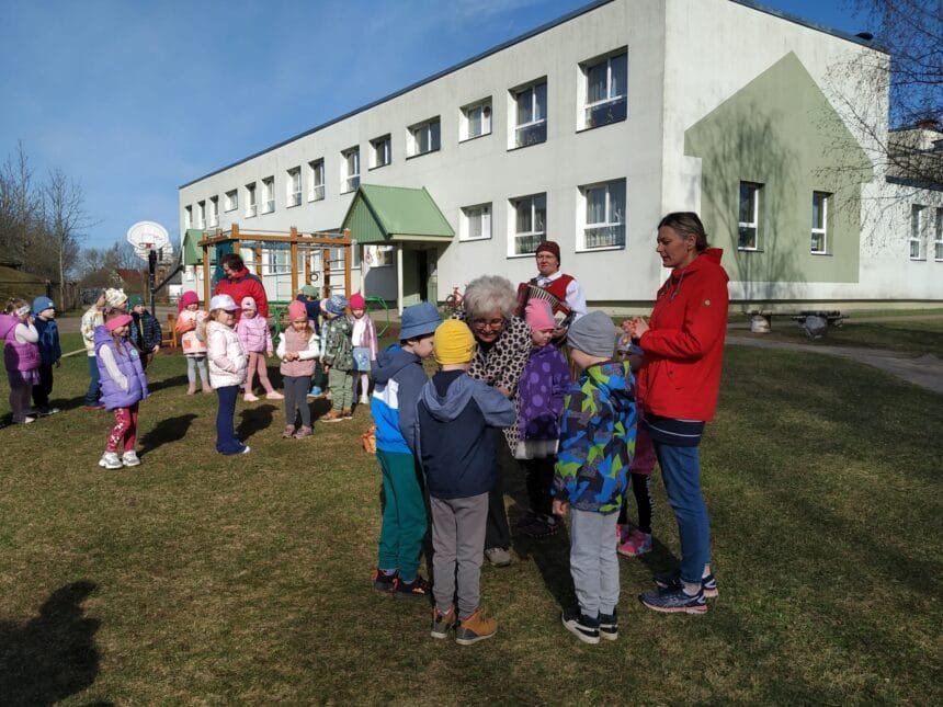 Savukārt muzikālās Lieldienu svinības, mūzikas skolotāju Sandra GABRANOVAS, Santas KĻAVAS – BŪMANES vadībā notika 16.aprīlī. Liels prieks, ka saulīte mūs lutināja un ar skanīgām dziesmām, rotaļām varējām pieskandināt laukumu un tuvāko apkārtni. Vislielākais prieks, ka arī putni no mūsu putnu būrīšiem un kokiem vēroja svētkus, čivināja un vīteroja līdzi dziesmām.