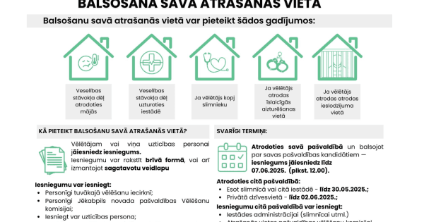 Lai nodrošinātu iespēju balsot vēlētājiem, kuri veselības stāvokļa vai citu iemeslu dēļ nevar ierasties vēlēšanu iecirknī, iespējams pieteikt balsošanu savā atrašanās vietā.