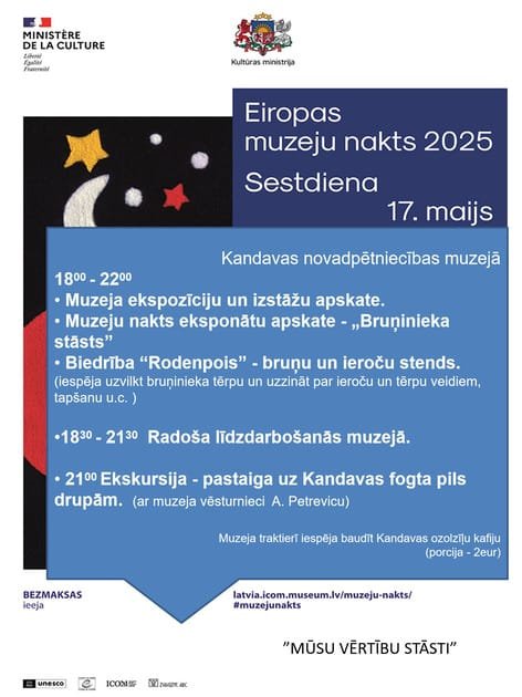 Kandavas novadpÄtniecÄ«bas muzejÄ:Ā 18:00 – 22:00Ā