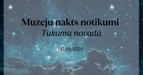 Mākslas darbi aicina ne tikai skatīties, bet arī piedalīties – izzināt, radīt un iedvesmoties. Klasika un mūsdienu interpretācijas satiekas vienā mākslas pilnā vakarā. Norises vieta: Tukuma Mākslas muzejs, Harmonijas iela 7, Tukums. Norises laiks: 18:00 – 23:00. Ieeja: bez maksas. Vairāk informācijas: 25494677, www.tukumamuzejs.lv/makslas-muzejs